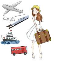 交通出行工具飞机,火车,巴士。